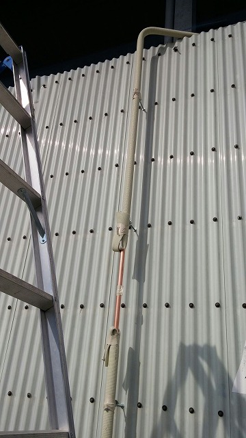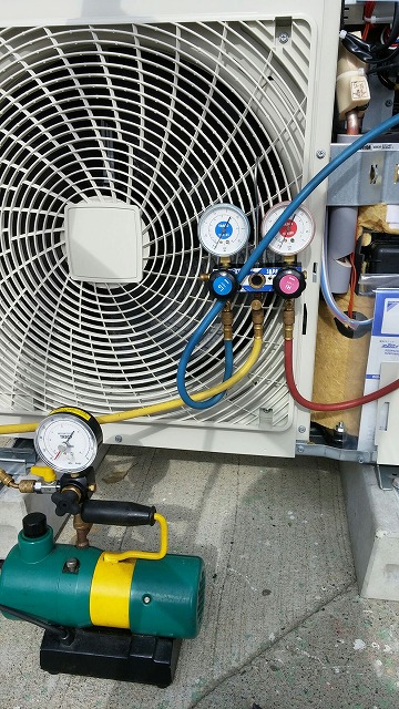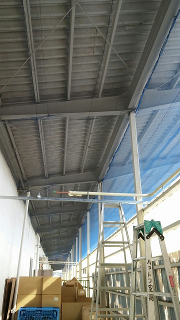 工場に設置するような大きな床置きタイプの為、室内機の重量が110kgと大変重く、なおかつそれを写真のような架台に設置しなければいけなかった為、リフトアップの台車を使用し、設置いたしました。